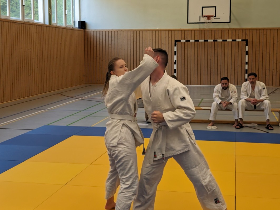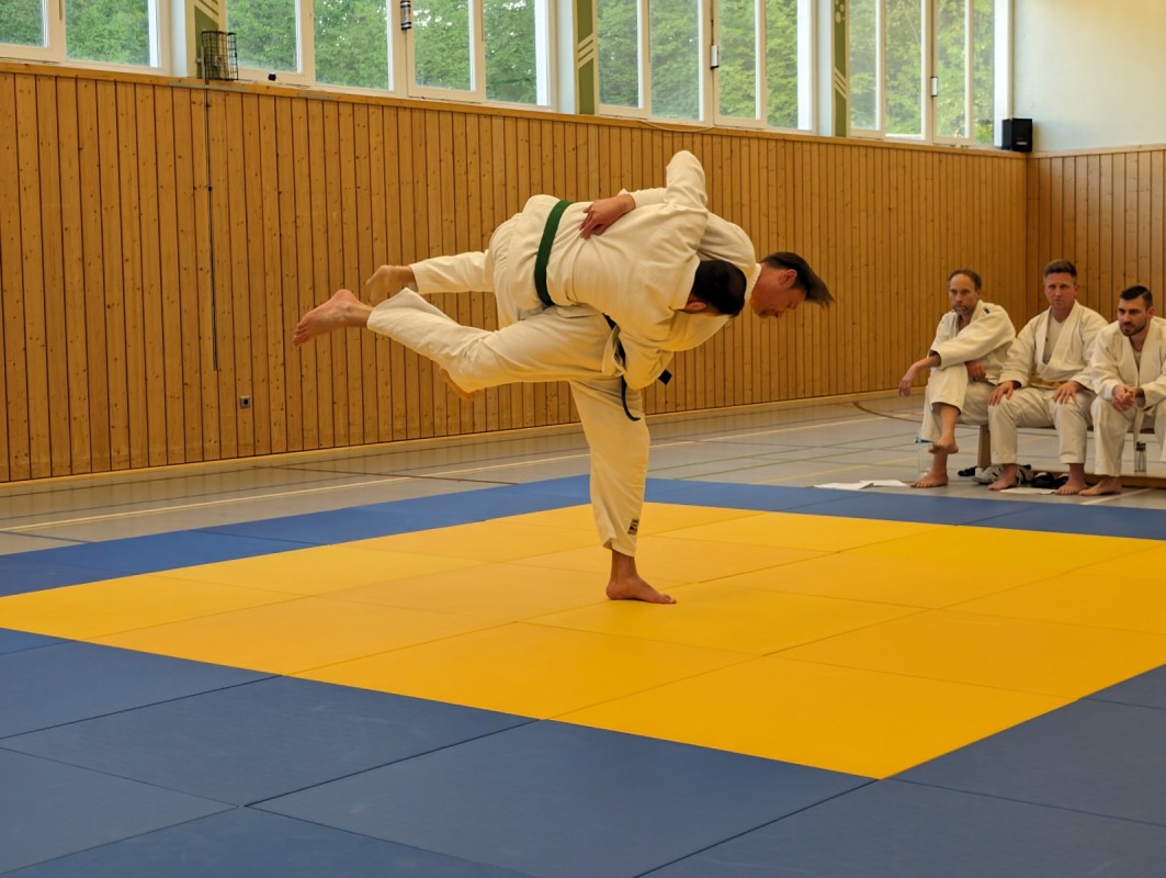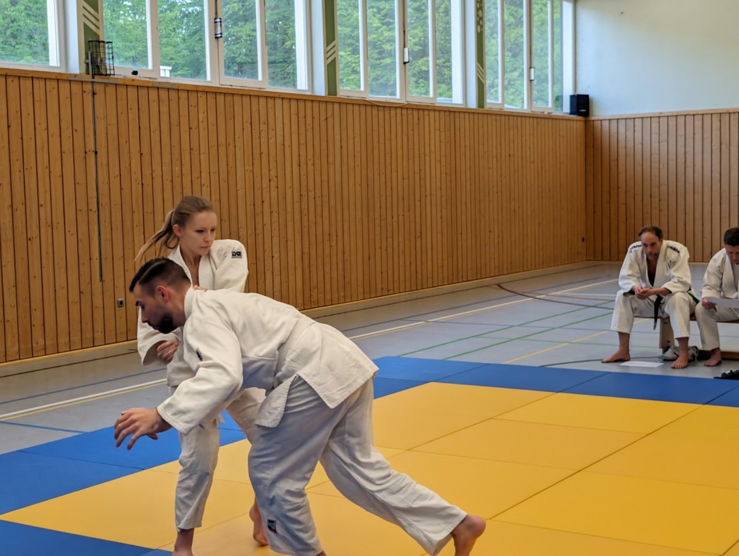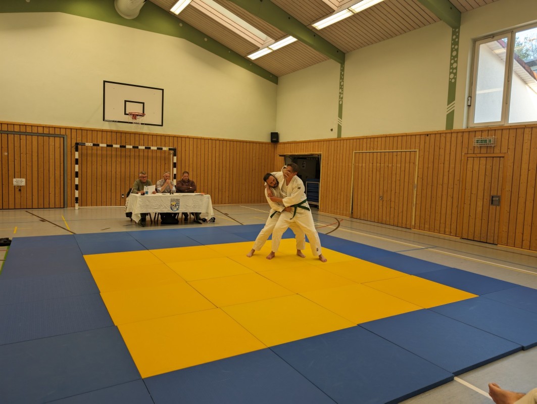 Während der dreistündigen Prüfung wurden drei komplette Gürtel Programme gezeigt. Techniken aus dem Blau-Gurt wie Weiterführungen und Gegentechniken sowie der Dreier-Kontakt, diverse Hebel im Stand und am Boden, Armbeugehebel als Festlegetechnik wurden gezeigt. Zum blauen Gurt wurden Christian Weißgeber (2. Kyu), Samy Daoud (2. Kyu) geprüft. Zum orangen Gurt wurde Christian Betz (4. Kyu) und zum gelben Gurt wurde Alina Dietzsch (5. Kyu) geprüft.