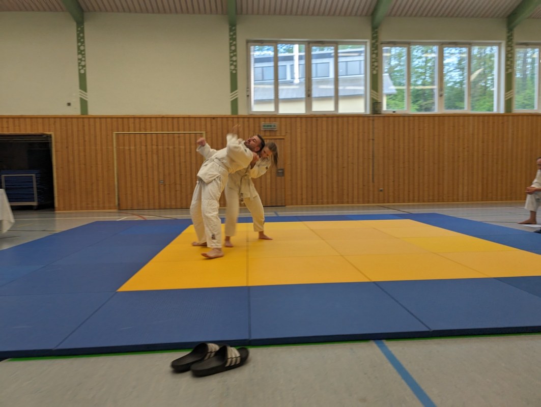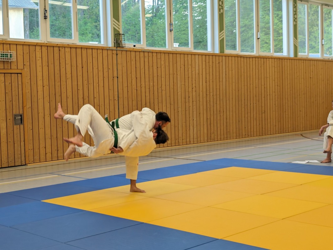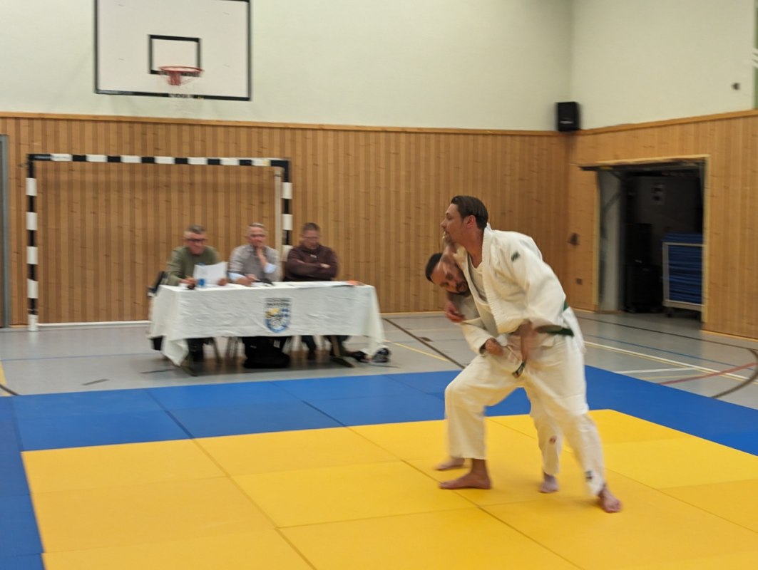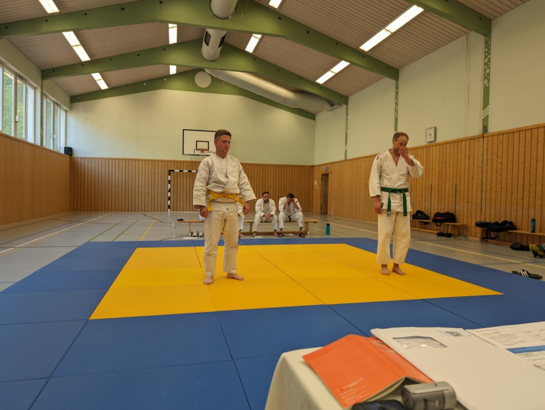 Während der dreistündigen Prüfung wurden drei komplette Gürtel Programme gezeigt. Techniken aus dem Blau-Gurt wie Weiterführungen und Gegentechniken sowie der Dreier-Kontakt, diverse Hebel im Stand und am Boden, Armbeugehebel als Festlegetechnik wurden gezeigt. Zum blauen Gurt wurden Christian Weißgeber (2. Kyu), Samy Daoud (2. Kyu) geprüft. Zum orangen Gurt wurde Christian Betz (4. Kyu) und zum gelben Gurt wurde Alina Dietzsch (5. Kyu) geprüft.